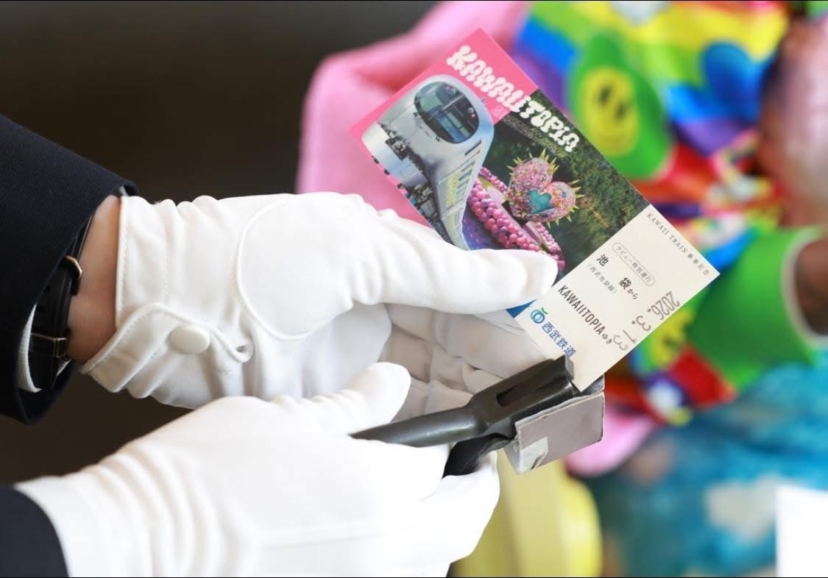 西武鉄道の昔ながらの改札鋏を使ってパチンと入鋏させていただきます。デジタルの時代だからこそ、手元に残る入鋏したチケットは、あなただけの特別な旅の証に。
