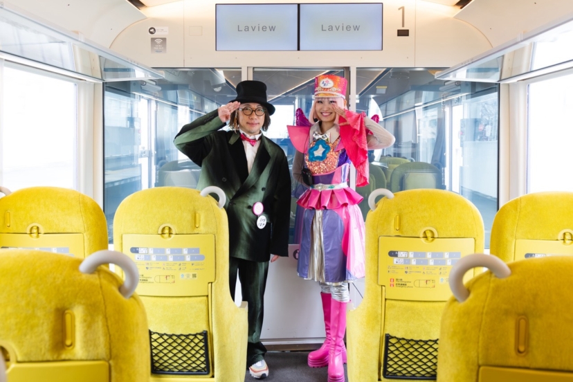 増田セバスチャン展「KAWAIITOPIA -GO TO HEAVEN(HELL)-」の開催を記念して、建築家・妹島和世がデザインした「大きな窓」と「黄色い座席」が特徴の「特急ラビュー」とのコラボレーション電車が運行します。