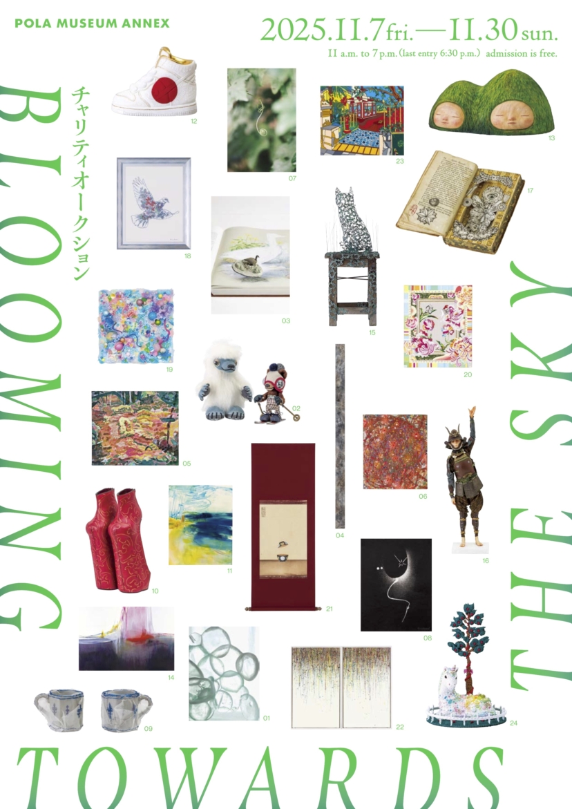 Sebastian Masuda is once again participating in the charity auction held at the POLA Museum Annex in Ginza. This year’s exhibition, “Blooming towards the sky,” features works by 24 artists and aims to support the recovery efforts for the Noto Peninsula Earthquake. Based on the theme of “new buds and sprouting,” Masuda presents a new collaborative work, “Inside &: Bloom,” created together with two New York–based artists: photographer Shoji Van Kuzumi and dance artist Mamiko Nakatsugawa. The artwork will be on view at the venue and available for bidding online through a silent auction system until November 30.