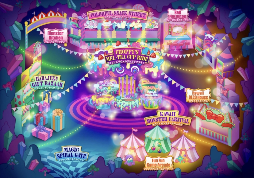 新シンボル「チョッピーのメルティカップライド」や店内マップが公開されました。増田セバスチャンによるカラフルなモンスターたちの新章が、GiGO×アソビシステムのエンターテインメント施設で始まります。